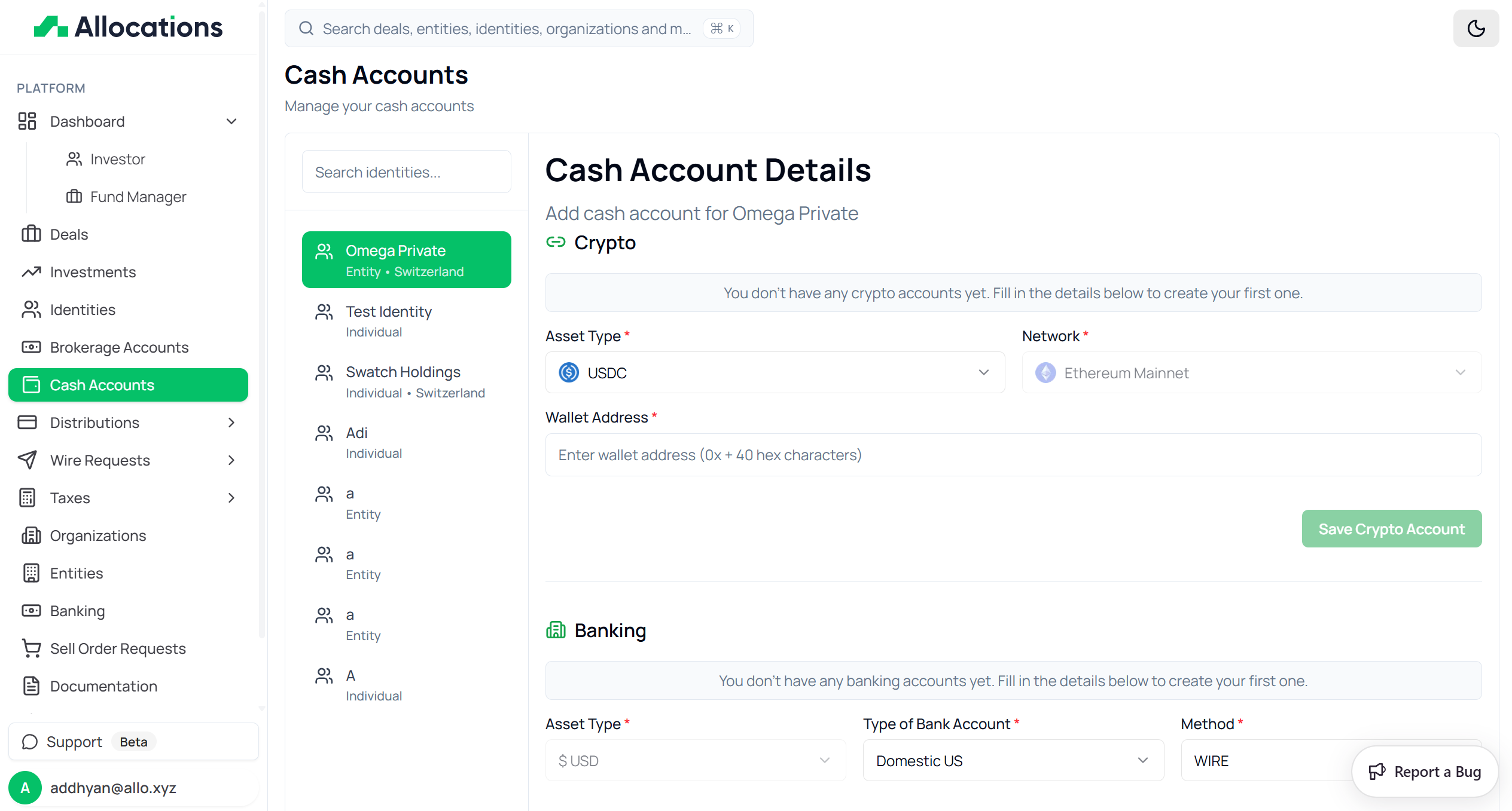 How to add and manage a bank account for your deal's capital operations on Allocations