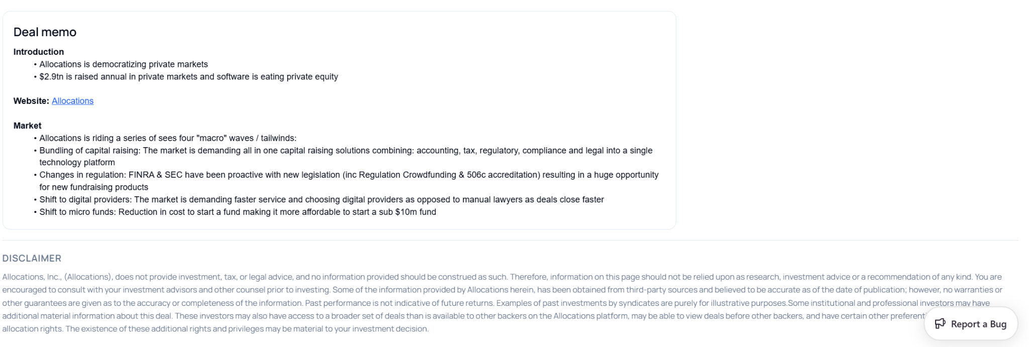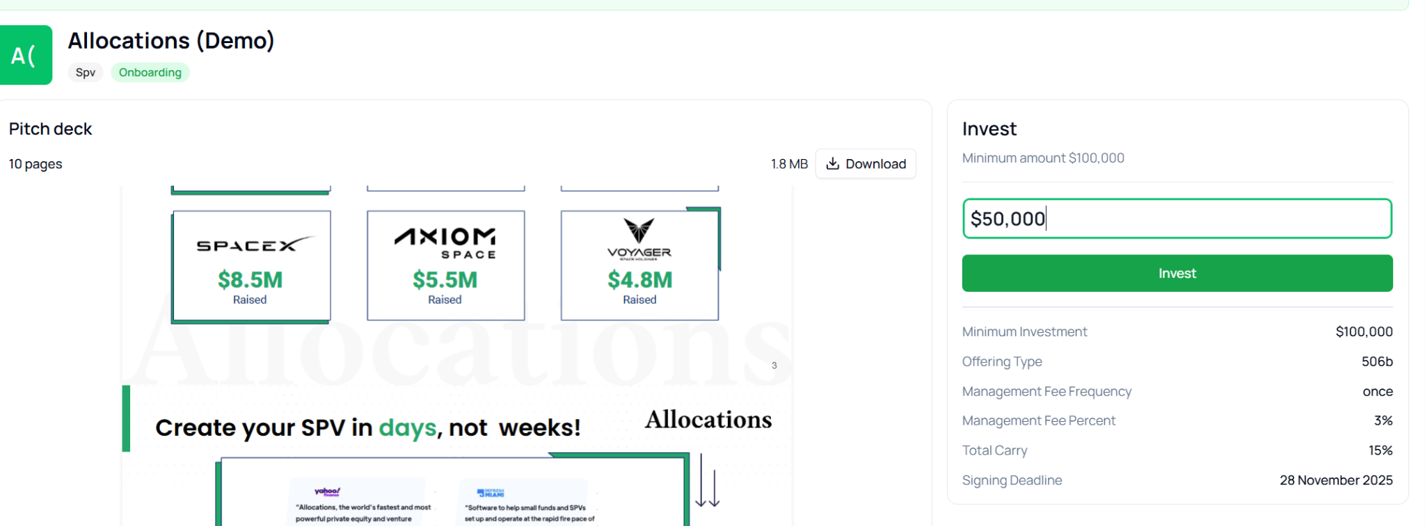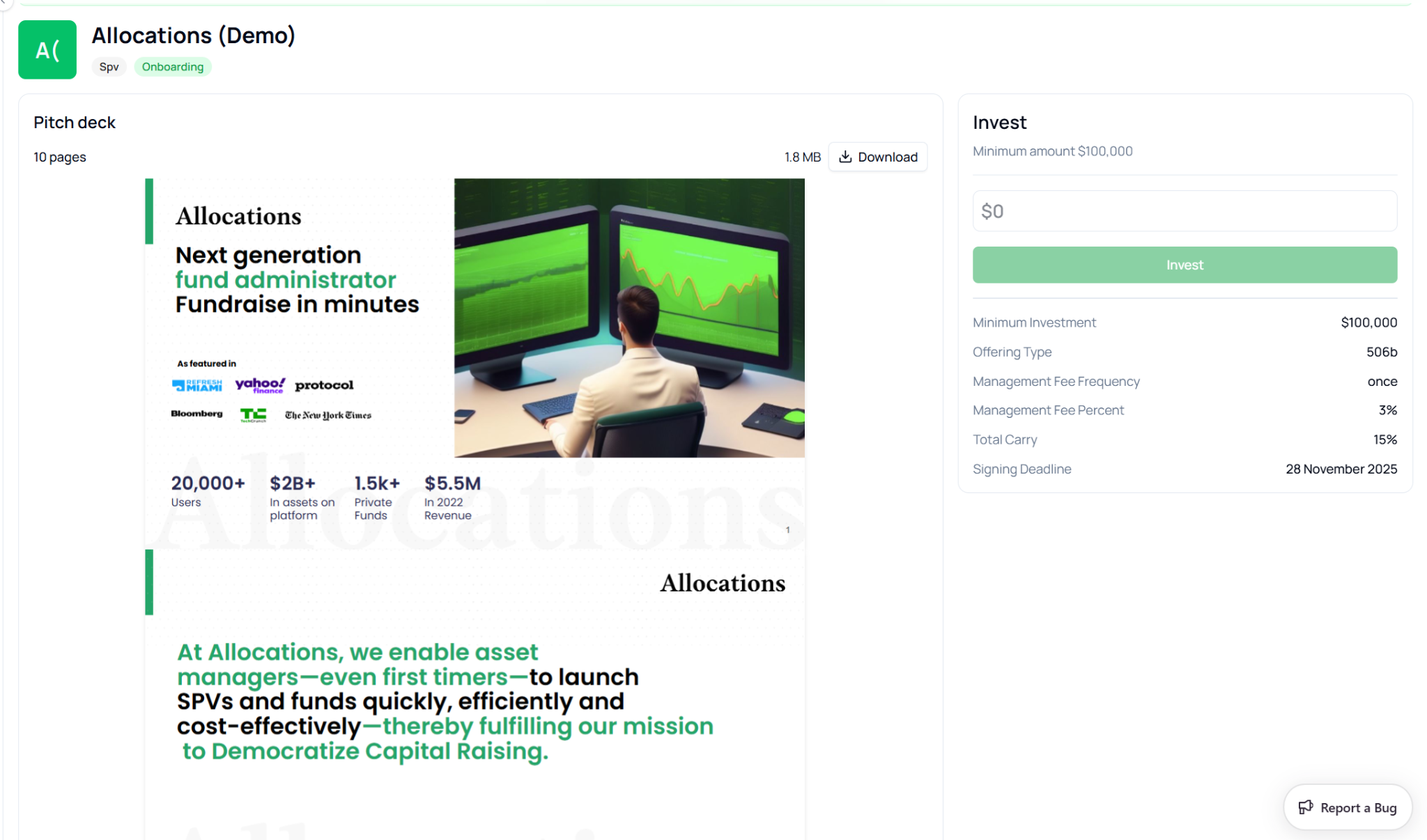Before investing, investors can review the deal details and supporting materials directly on the deal page.